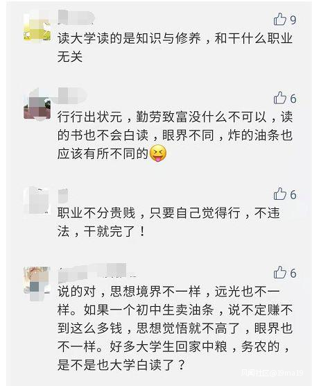 記者:有網友稱大學畢業以後擺攤賣油條,而初中生完全可以做到,大學就白讀了嗎?