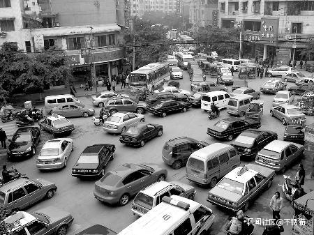 再比如下面這張圖,是四川省眉山市下轄的仁壽縣城,因為汽車的迅速普及,加上缺乏交通秩序,連小小縣城都堵的如此水瀉不通,如果換成摩托車呢?