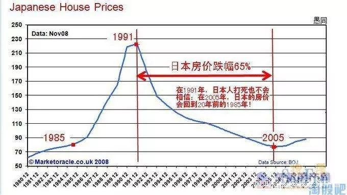 日本股市是多米諾骨牌的第一塊,1991年,日本房價也開始一瀉千里。