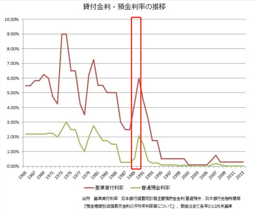日本政府又祭出了5年前使用過的那招——調利率,只不過這次是往高調,而且調整的幅度太大了,1989年5月至1990年8月,日本銀行五次上調中央銀行的利率,從2.5%升到了6%。