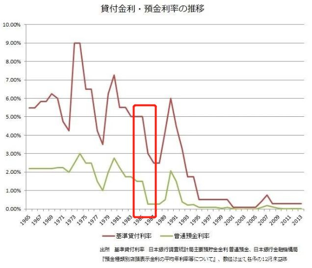1986月1月30日,日本宣佈將銀行利率從5%降低到4.5%。