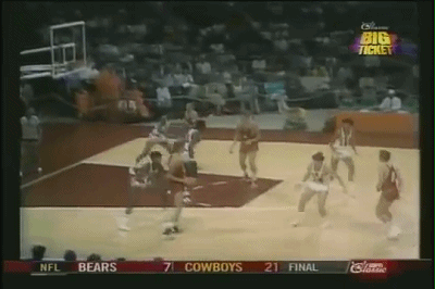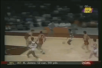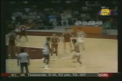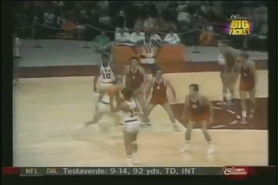 在自己的出手被麥克米倫封蓋之後,蘇聯的進攻時間已經只有三四秒鐘,此時亞歷山大-別洛夫沒有把球傳給身旁本場手感不佳的保勞斯卡斯和同側無人防守的謝爾蓋-別洛夫,而是冒險地傳給弧頂的薩坎傑利澤。此時道格-科林斯搶先一步斷下了這記傳球,薩坎傑利澤匆忙啓動追趕,對飛身上籃的科林斯犯規,科林斯的上籃沒有打進,自己也重重地撞在籃架上久久沒有緩過來。