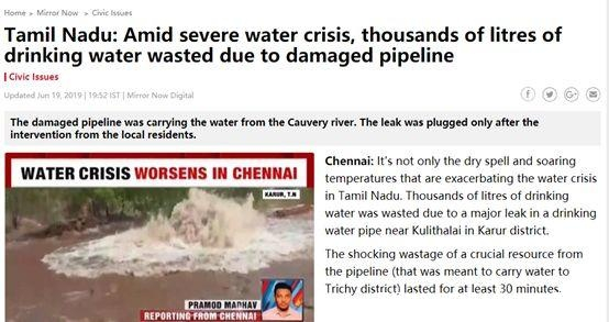 這一觀點也得到了其他西方媒體和印度媒體的作證。比如英國《衞報》的採訪就同樣點出印度缺乏對雨水有效的採集和循環利用是導致印度在面臨乾旱時很容易陷入用水危機的原因。《印度時報》等當地媒體早前的報道還指出印度的自來水管網的老舊破損,也導致大量用水被白白浪費。