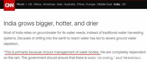 至於原因,CNN採訪的一位印度專業人士認為最主要的癥結是印度相關機構對於水資源缺乏有效的管理和利用,導致印度格外依賴雨水作為其主要的用水來源。但氣候變化又導致降雨變少和雨季延後…..