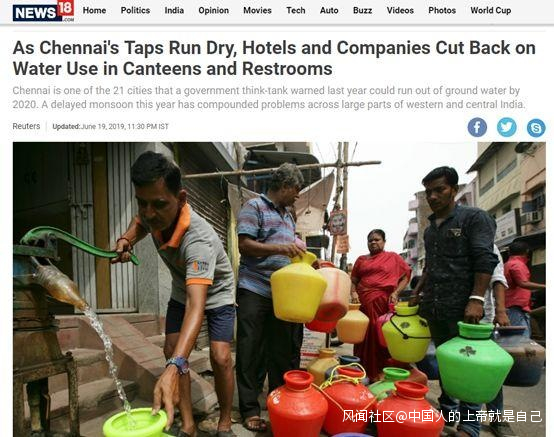 所以,根據CNN、BBC等西方媒體乃至一眾印度媒體的報道,目前欽奈的平民百姓想用水的話只能拿着家裏的鍋碗瓢們去那些還能出點水的水龍頭打水了,但這種地方一般都是人頭攢動,排着大長隊……