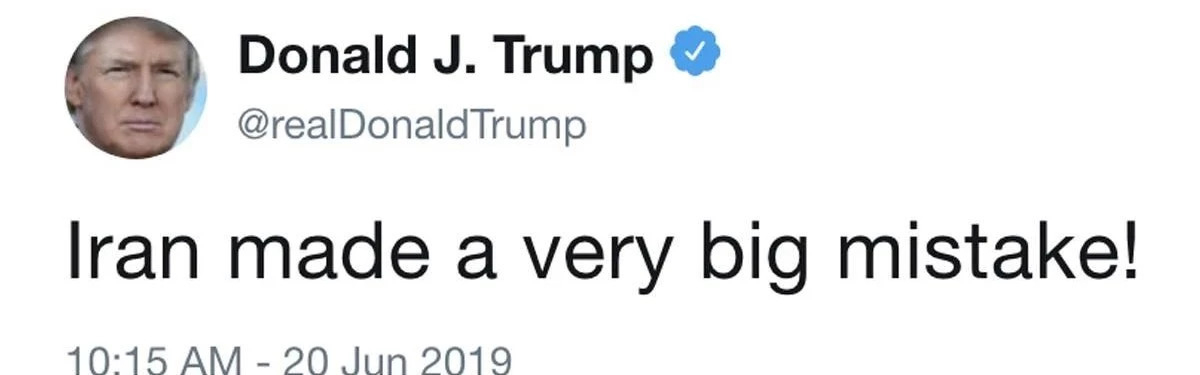 美國總統週四在會見加拿大總理特魯多時説:“伊朗犯了一個非常大的錯誤。這架無人機是在國際水域,顯然,我們有這一切的記錄,有科學的記錄,而不僅僅是口頭説説而已,他們犯了一個非常嚴重的錯誤。”