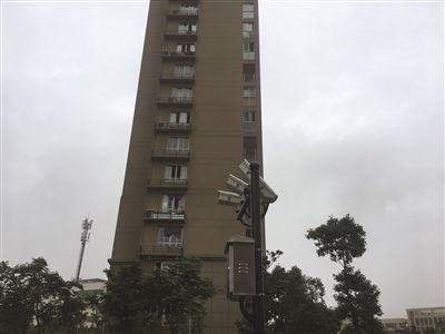 每組監控有三枚攝像頭,仰角從低到高,把大樓高層都納入到了監控鏡頭內。目前,有6幢樓都安裝了天眼,一共36枚。