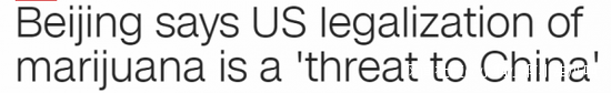 “中國禁毒機構稱加拿大和美國一些州的大麻合法化是‘對中國的新威脅’”——美國有線電視新聞網(CNN)和美國新聞與世界報道網站都把這句話作為了報道標題。