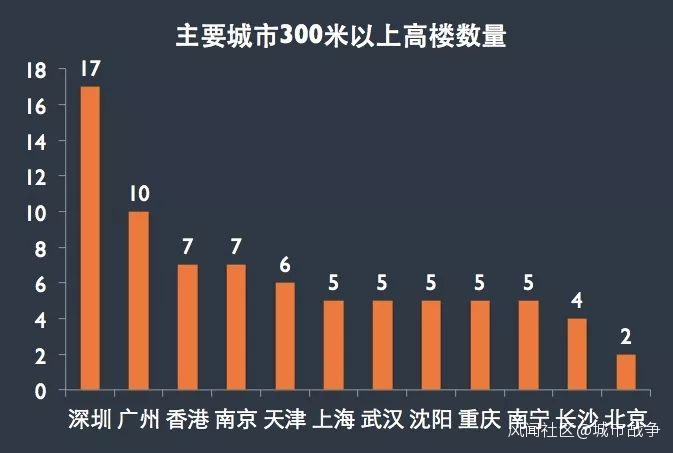 深圳目前擁有17棟300米以上超高層,遠遠超過香港、廣州、上海,以一騎絕塵的姿勢領先全國。