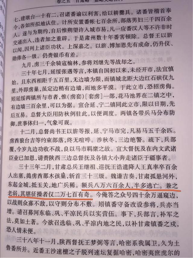 負責拱衞京師的薊鎮兵員質量已經是非常不堪,更不要説是偏遠邊鎮。我就以甘肅鎮為例,根據魏謙吉的奏報,甘肅鎮兵原額有80600多人,有一半逃亡,除去老弱,能打仗的只有20700人,像這樣的糜爛的邊防又怎麼能禦敵呢?