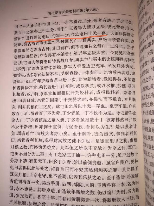 為何會導致糧餉不足呢?其主要原因就是屯田被破壞。據《皇明九邊考》記載,到嘉靖時期,“國初屯田,每軍一分,今之屯田者十無一存”。造成屯田被破壞原因很多,一是由於韃靼侵擾,軍隊由於戰鬥力差,不能保護耕種者。另一方面,就是軍官侵佔、豪強奪取、無力耕種者的典賣。比如説嘉靖七年,大學士楊一清就説道“屯地多侵沒於豪右之家”。