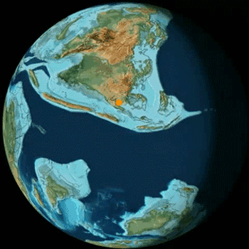 (印度洋板塊與歐亞板塊碰撞示意圖,因為碰撞過程複雜,圓點僅為雲南的大致位置,與實際可能有偏差,原視頻製作@Christopher Scotese)