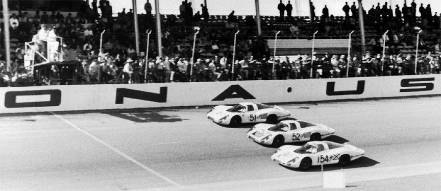 Porsche的勝利還剛剛開始,1967年在Daytona又是包攬前三名,1968年Sebring、Targa Florio、Nurburgring再扒頭籌,此後還有更多桂冠