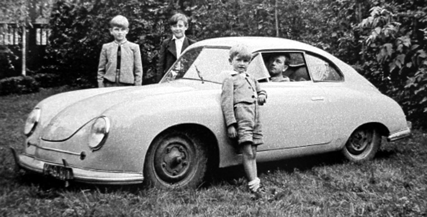 小Ferdinand(小名Burli,但還是索性按照現在的習慣叫法,直稱皮敍吧)從小也是在汽車裏泡大,這是和舅舅費裏設計的356在一起