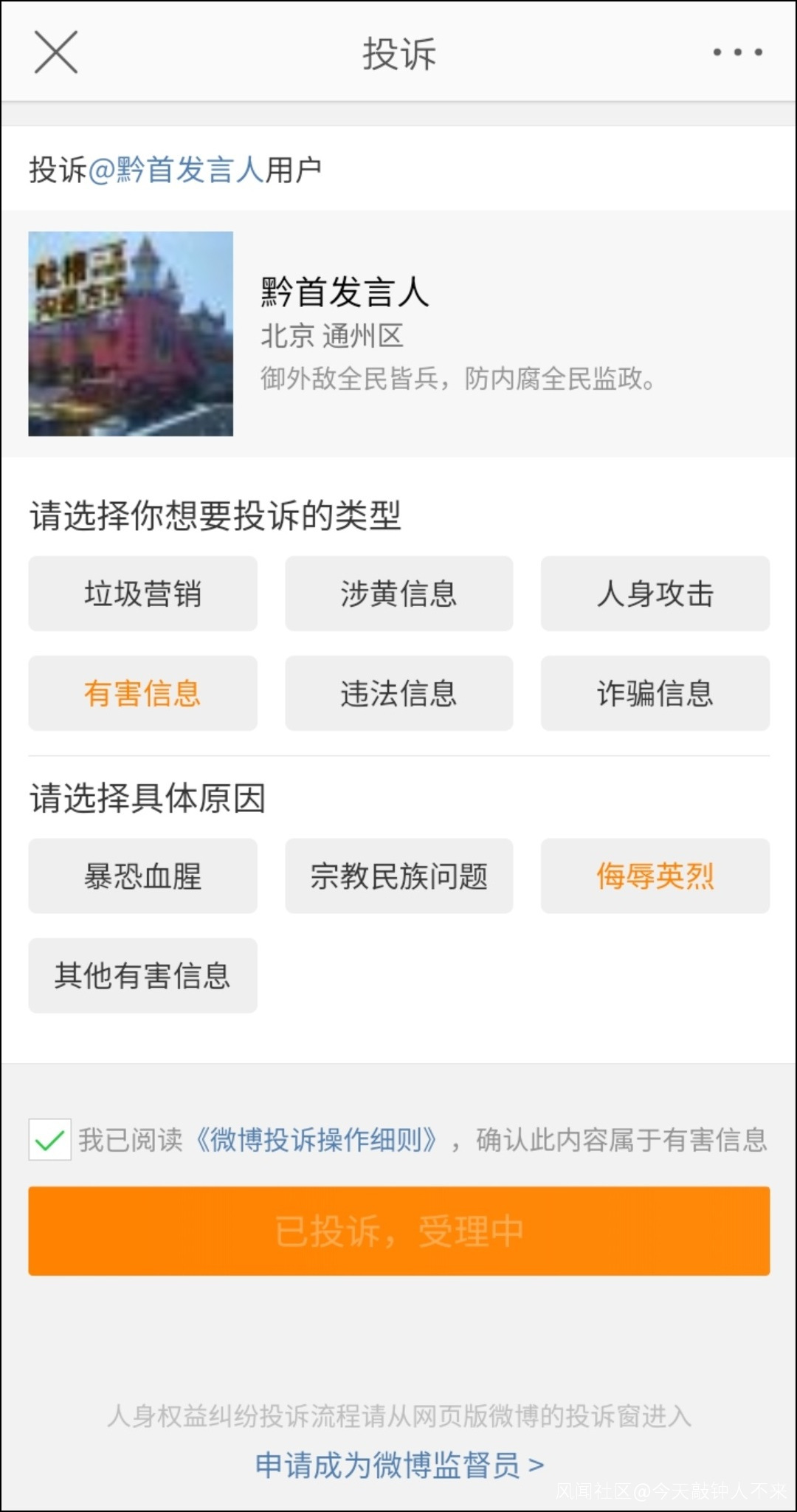 其言論不僅是犯了歷史虛無主義之錯誤,更是無知到涉嫌侮辱英烈。目前,已經有眾多網友對其進行舉報,而新浪微博也第一時間對其賬號進行註銷: