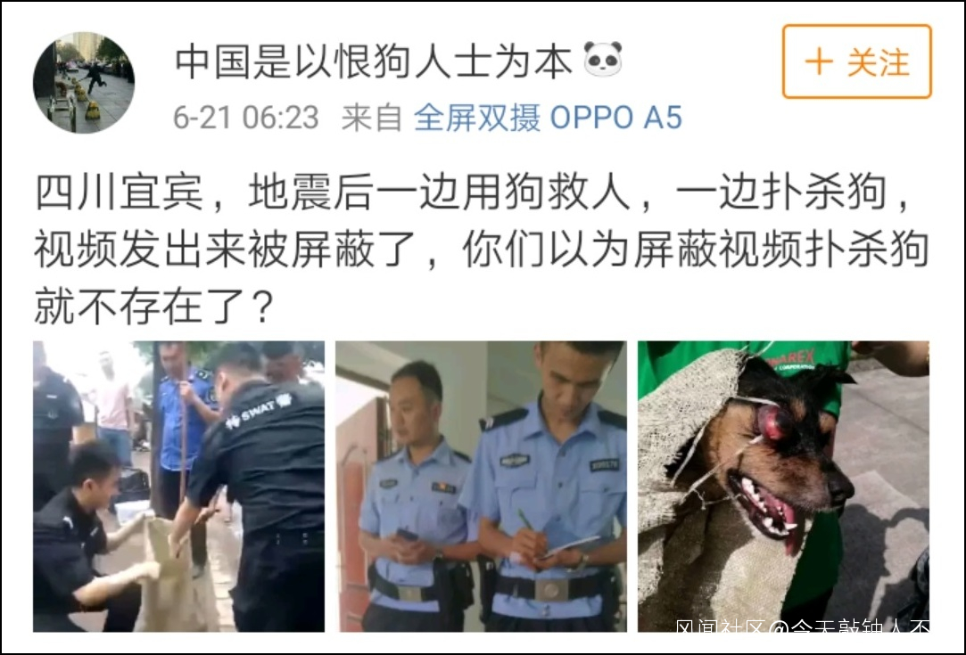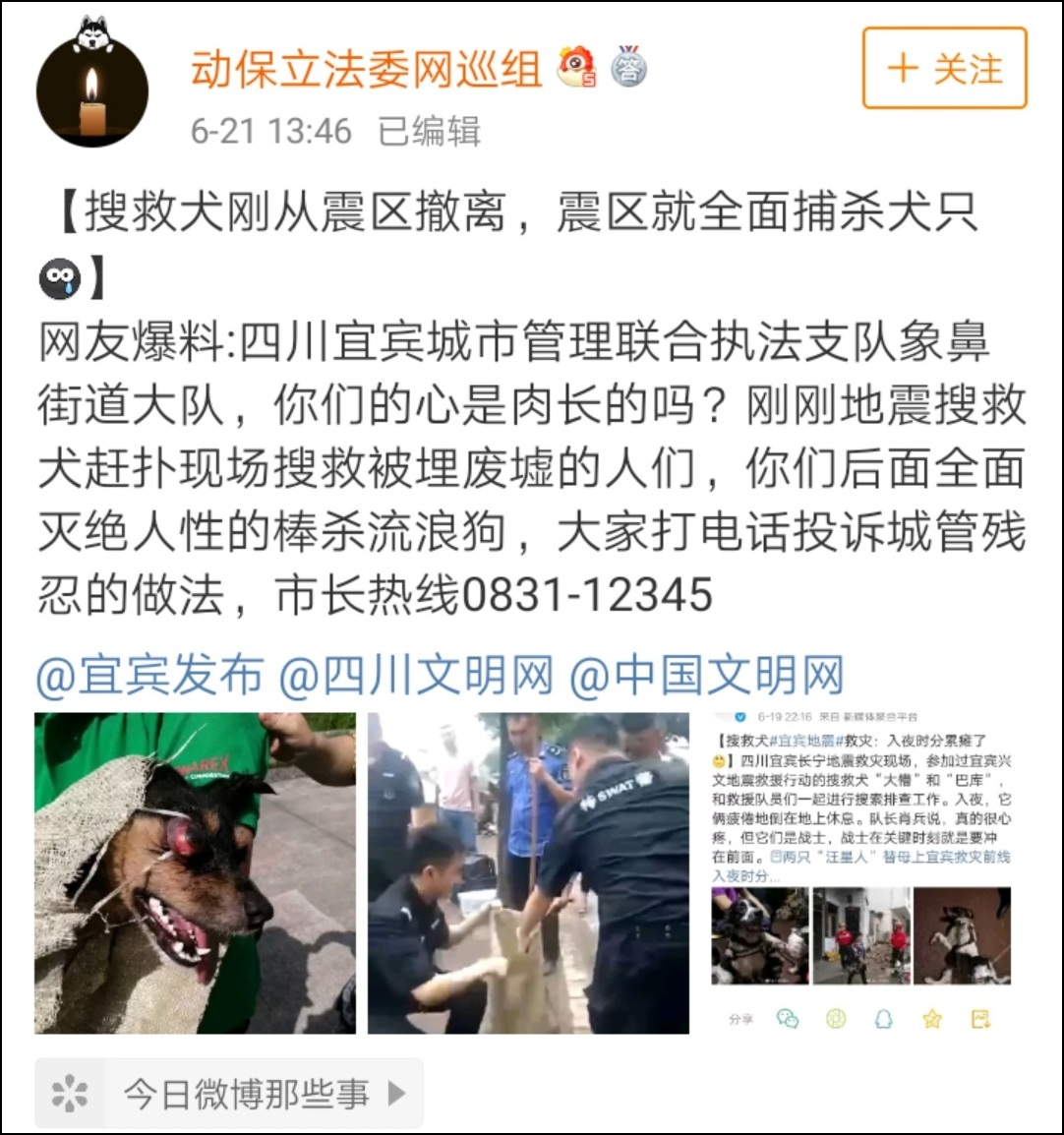 宜賓地震後撲殺流浪狗,動保博主怒了,我們看了更加怒……_風聞