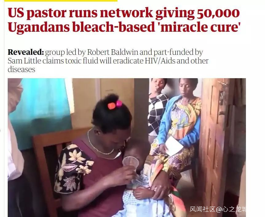 而就在上個月,一名烏干達的美國“牧師”還被英國《衞報》曝出了更加驚天的大丑聞:這個美國人居然把一種“工業漂白劑”説成是可以治療艾滋病的神奇藥物,騙數萬名當地人喝了下去。