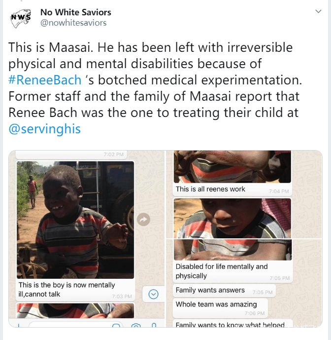 不僅如此,當地一個名叫“拒絕白人救世主”(No White Saviors)的團體還指控芮內·巴克用烏干達兒童進行各種“醫療和藥物實驗”,其中一些兒童受害者即便活了下來,也遭受了無法逆轉的終身傷痕乃至殘疾。