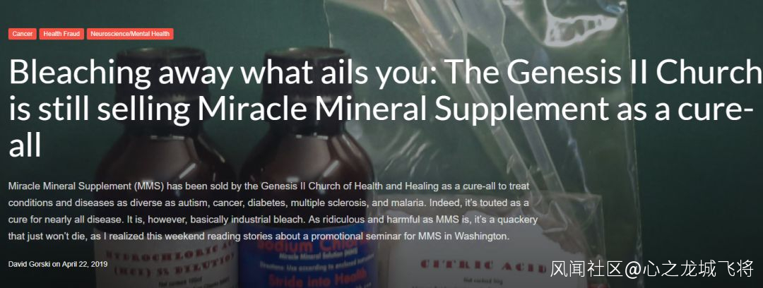 更令人震驚的是,根據一些美國媒體和網站的報道,這種把工業漂白劑説成是“包治百病的靈藥”的做法,是從美國國內幾個帶有明顯邪教組織色彩的宗教團體那裏流傳起來的——但由於美國所謂的“宗教自由”政策,這些組織的成員只要不在美國把漂白劑當藥賣就不會被逮捕。這便給了他們將邪教理念出口到國外,並用“基督教”等正規宗教進行包裝荼毒非洲人民的機會,尤其是烏干達這種基督教信徒很多的國家。