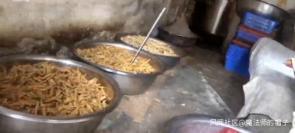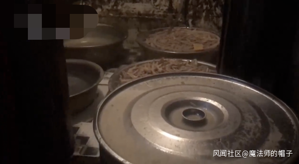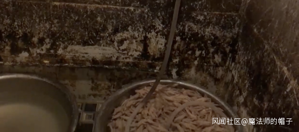 加工坊裏,隨意堆放着的不鏽鋼筒,疊放在一起的塑料筐,地面和置物台,明顯是長期無人清理,加工用品也都散亂的擺放着,裏面的味道令人聞之作嘔。