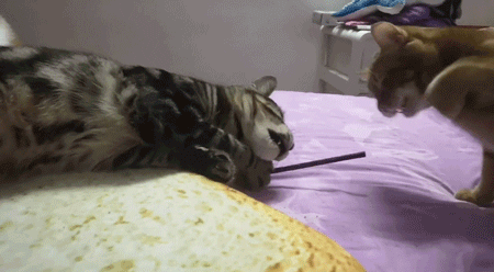 豆豆選手敏鋭地發現了木天蓼棒棒糖與球的不同之處,把握住了木天蓼棒棒糖的杆這個漏洞,竟然剋制住了桃桃選手的必殺技!
