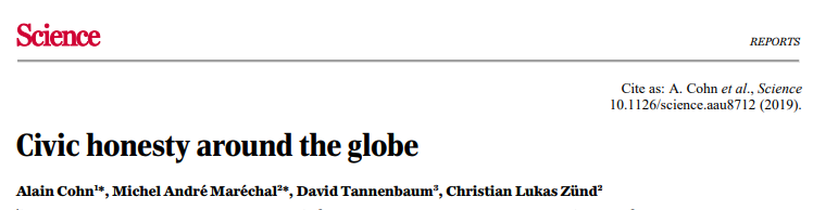 不久之前,國際頂級期刊《Science》發表了一篇文章《Civic honesty around the globe》,主旨在於討論世界各地公民的誠信問題。