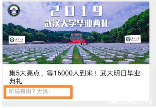 武漢大學官微在預告中表示:聽説有雨?幕天席地,風雨無懼!