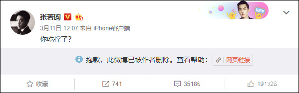 2019年3月,唐藝昕再被質疑,張若昀怒懟造謠者;