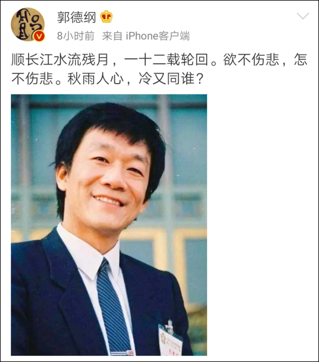 郭德綱發文緬懷恩師侯耀文:秋雨人心 冷又同誰?_風聞