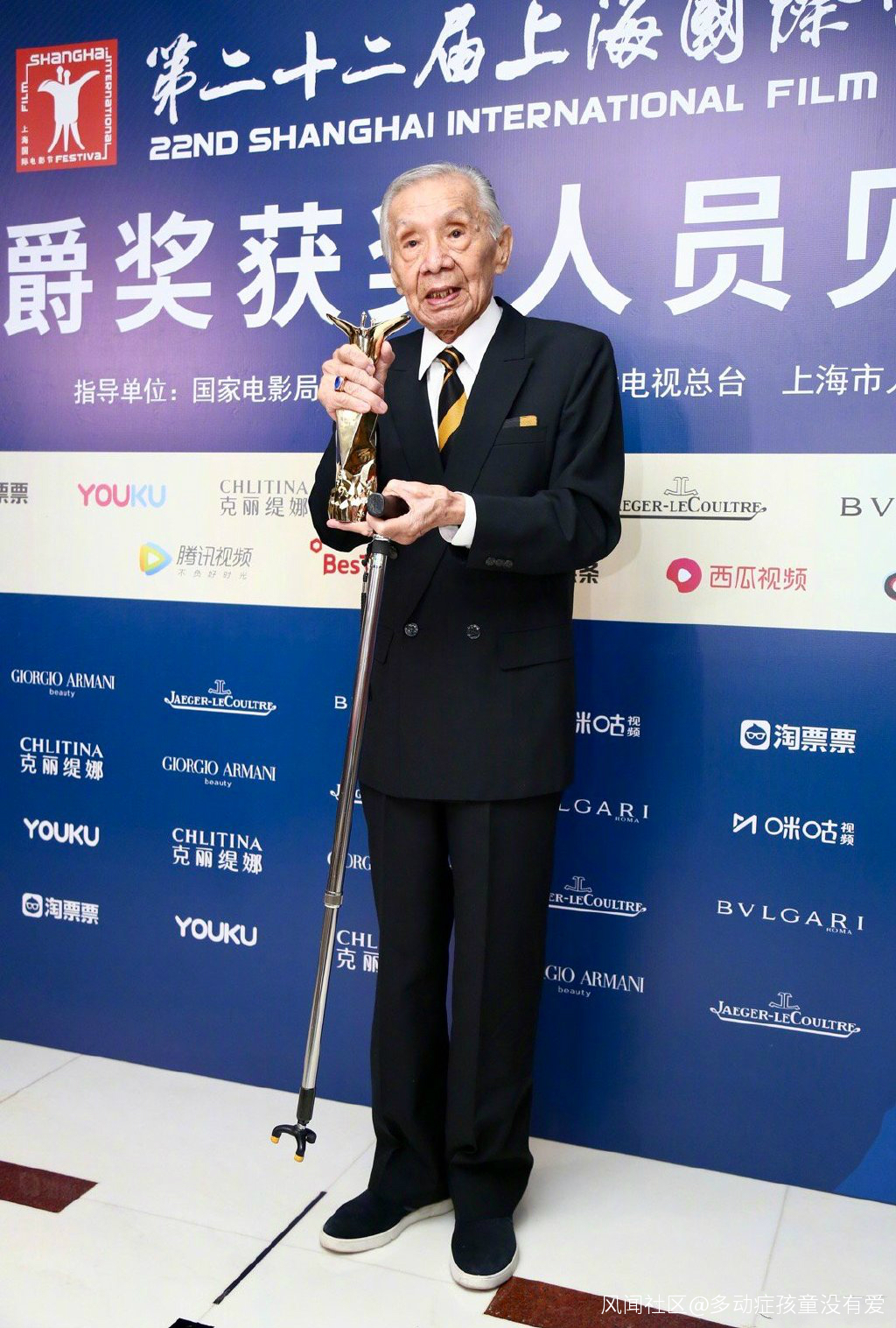他站在台上發表獲獎感言:“我年紀大了,記憶力不好了,説話也囉裏囉嗦,今天上海國際電影節好像跟我有一個默契,也可以説一個歷史,剛才主持人介紹我96歲了,這麼大年紀,能夠站在這領獎應該是非常不容易,我特別謝謝各位評審。”