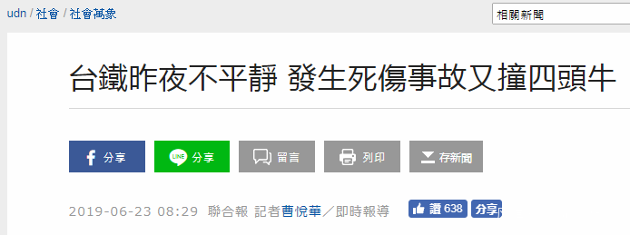 台鐵普悠瑪列車又出事故 半夜撞到4頭牛_風聞