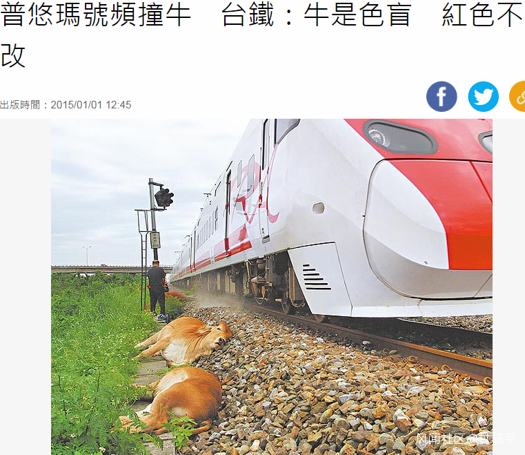 台媒報道稱,事故雖然沒有造成人員傷亡,但被撞的牛有兩頭死亡,另外兩頭“不見牛影”。凌晨3時左右,牛的屍體被清理完畢,軌道設備無異狀。