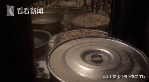 記者觀察着這個作坊式的加工環境,隨意堆放着的不鏽鋼筒,疊放在一起的塑料筐,地面和置物台,明顯是長期無人清理,加工用品也都散亂的擺放着,裏面的味道令人聞之作嘔。