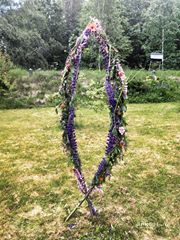 大家不知道的是仲夏節背後更深層次的淵源。我不知道大家看到這個特殊形狀的柱子時會闡發什麼樣的聯想。如果做一個點破而不説破的提示,這個傳統其實是散發着濃烈的荷爾蒙氣息的——我要説明的是,這不是來自於我的個人想象,只要能閲讀瑞典語,這都不是秘密。瑞典媒體總會不厭其煩地給大家科普關於瑞典的社會常識,比如瑞典最大的晚報Aftonbladet報道的 11 saker du inte visste om midsommar 。讓大家圍着柱子跳舞,其實就是提供給人們一個相互認識的情景。關於年輕女孩的花環,其實我也沒有介紹完,這個花環按照傳統要放在枕頭底下陪伴她們入夢,去會見希冀的男子。臨近仲夏節,瑞典的國家廣播電台Sveriges Radio甚至還有一個另類的科普節目,介紹如何在仲夏節進行野合——Knulla utomhus på midsommar! 在國家廣播電台談如何在開放的空間做羞羞的事情,這應該是有着含蓄文化傳統的中國人不敢想象的事情。當然,如果不是Aftonbladet的介紹,我也不會知道原來瑞典此前,還會存在年輕人們在仲夏節大清晨赤身裸體一同踩着露珠去踏青的傳統,據説這樣就可以保持秋冬時節的健康——科學的解釋大概是這樣可以多吸收點陽光,多產生一些維生素D。話説,因為近年來的女權運動,在瑞典某些地方還出現了繞着個棗核型大花環跳舞的新傳統。我就不做過多解釋了,見下圖。