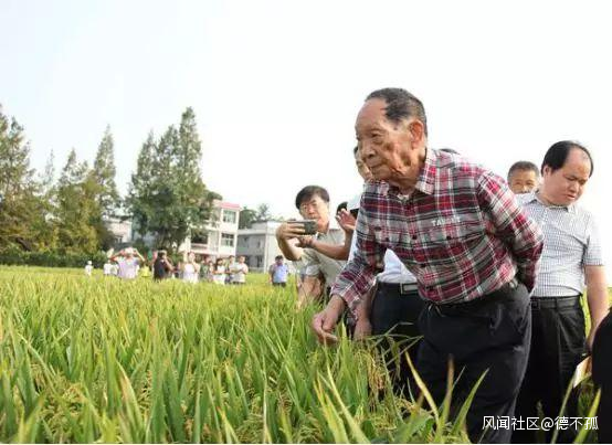 袁隆平到基層查看水稻長勢。