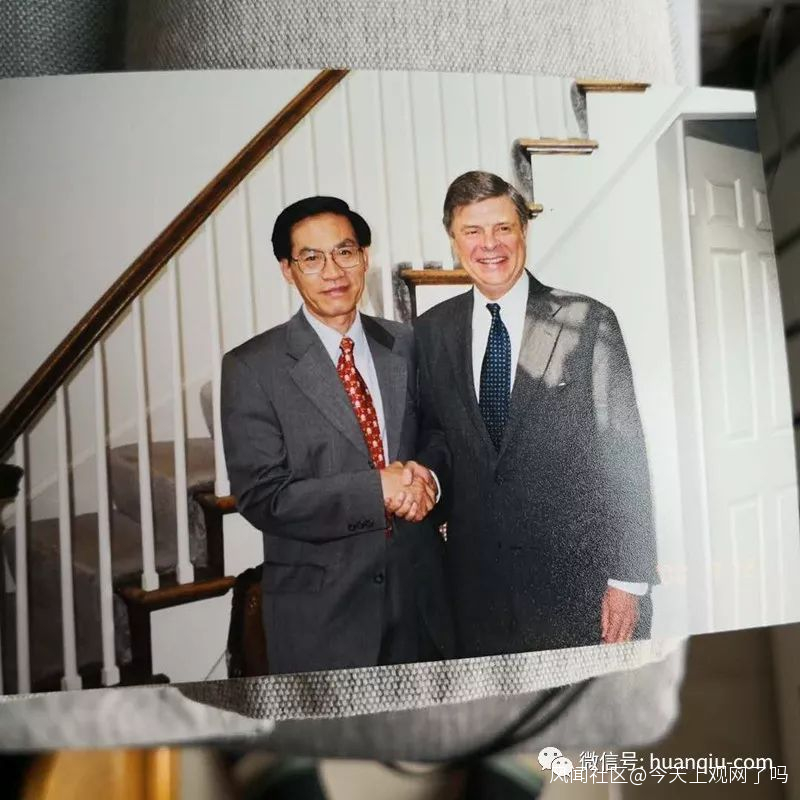 美國前駐華大使尚慕傑在家中接受作者採訪後合影。本文圖片均由作者提供