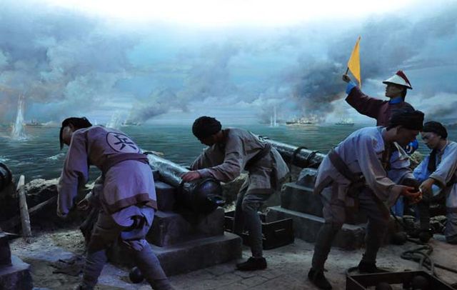 大沽炮台戰鬥場景還原。6月17日,八國聯軍攻陷大沽炮台;19日,清廷才發出所謂的“宣戰照會”。