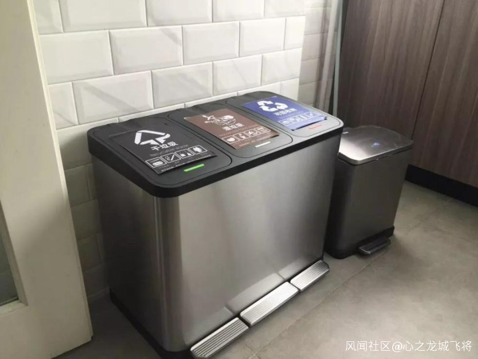 除此之外,標註清晰,簡單明瞭的四色分類垃圾桶也是許多人的選擇。淘寶、京東等電商平台有許多這樣的垃圾桶可供選擇,比如這類不鏽鋼腳踏式四色分類垃圾桶,價格基本在300-400元左右。不過正如網友所説:想要放下這樣一個垃圾桶,你得有個大廚房。