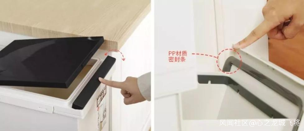 這款垃圾桶採用推車式設計,分為上下兩層,上層可以分開放置幹、濕垃圾,下層可以放置可回收物品。上層腳踏式開合,蓋子邊緣有隱藏式的硅膠PP密封條,防止臭味散發出來還很靜音;下層手拉式開合,老人和小孩都能輕鬆使用。目前這款45L的垃圾桶各大電商平台的售價均在498元左右。