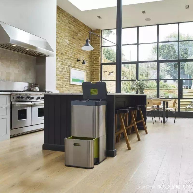 這款智慧分類垃圾桶有48L、60L兩種尺寸可以選擇,分為上下兩層,上層包含了一個可拆卸的廚餘垃圾桶,蓋子上有一個能放置碳濾片的夾層,濾片定期更換,吸附怪味力一流,下層放可回收物品,中間有一片可拆卸的隔板,瓶瓶罐罐都能塞進去。設計精巧、功能強大,不過售價也很昂貴,60L的垃圾桶,各大電商平台價格普遍在3000元左右,不在意預算的大佬們請隨意。