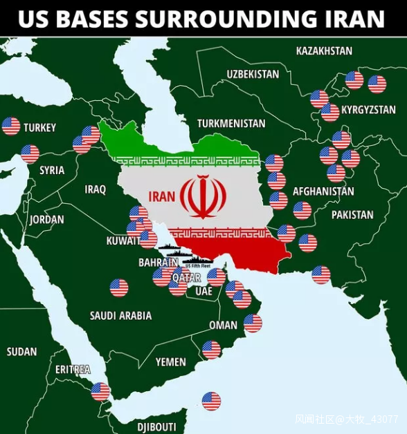 伊朗周邊的美國軍事基地,都在伊朗導彈的射程範圍內
