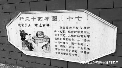 記者注意到,在養老機構的宣傳欄裏,卻很少能見到有關“二十四孝”的內容,而是把豐富多彩的老年生活當成了展示重點。一些社區也意識到“二十四孝”存在的爭議,他們在宣揚傳統美德的同時,也開始思考如何為孝道文化注入新的內容。