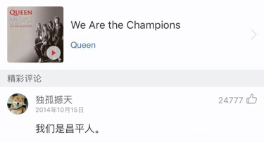 **“champions"直接空耳成"昌平”,**音與意的交融,縮減了兩個文化間的溝壑,兩萬點贊就是對這一精巧構思的嘉獎!
