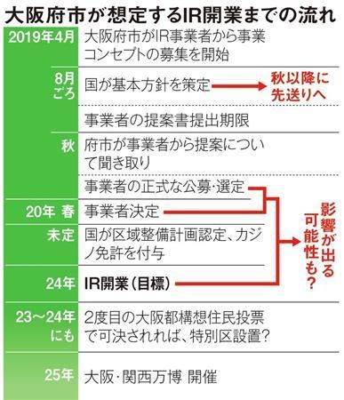 推遲項目進行的國家動向對大阪府市來説產生了重大的打擊。因為政府的基本方針落後,企事業單位的公開招商將推遲。這可能會對在世博會前一年的2024年度(令和6年)開業的計劃產生影響。