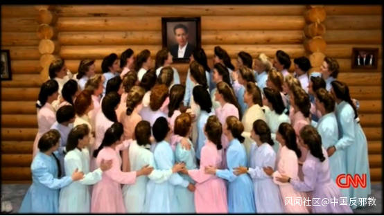 多妻制摩門教基要派邪教頭目沃倫傑夫斯的妻子們向其肖像表示忠心。