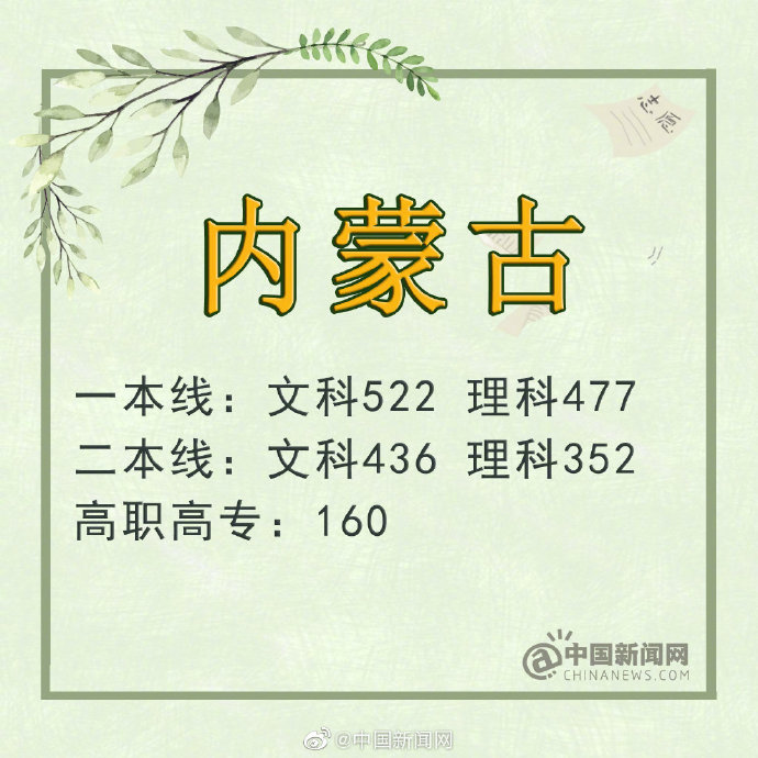 據內蒙古招生考試信息網網站消息,6月23日,2019年內蒙古高考分數線出爐:普通文科一批522分、二批436分、高職高專160分;普通理科一批477分、二批352分、高職高專160分;蒙授文科一批398分、二批320分、高職高專120分;蒙授理科一批348分、二批274分、高職高專120分。