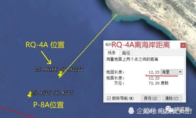 從上面的定位可以看到,美國人非常雞賊,RQ-4A雖然沒進伊朗領空,但是卻是貼着12海里的領海線飛的,這碰瓷技術的確一流。