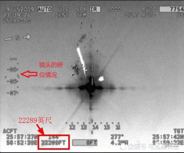 由於當時在事發空域還有一架美軍的P-8A反潛巡邏機在執行監視任務,所以其正好在空中使用光電吊艙拍下了RQ-4A BAMS-D無人機被導彈命中的全過程。事後美軍為了指責伊朗的過激行為,特意公佈了RQ-4A被導彈命中瞬間的視頻截圖,而從這張截圖上我們可以讀出當時P-8A的飛行高度為22289英尺,也就是6793米左右。同時鏡頭側面的俯仰刻度顯示,P-8A是以幾乎平視的角度拍攝的,所以當時RQ-4A的飛行高度和P-8A應該是差不多的。看到這裏有的軍迷朋友可能會有疑惑,因為美國空軍的各型RQ-4在執行任務時飛行高度一般都保持在1萬米以上,為何這次海軍的RQ-4 BAMS-D只飛6千多米?這其實是美軍空海兩軍任務要求不同造成的。在海軍的BAMS-D項目中有一項特殊要求,就是需要對海上目標進行精確識別,這就要求無人機需要經常降低高度,使用光電設備對海上目標進行高清拍攝。而這也是為何BAMS-D項目的最終產品MQ-4C海信使無人機要強化機身材質,並強調抗冰雹、雷擊和鳥擊性能的原因,這些都是為快速降高和中低空飛行準備的。這次被擊落的RQ-4 BAMS-D是MQ-4C的驗證機,所以它在使用上也經常需要降低高度飛行。根據P-8A拍攝的信息,基本上可以確定在被擊落前RQ-4 BAMS-D正保持6700多米的高度,以575公里/小時左右的常用巡航速度向西北方向飛行。