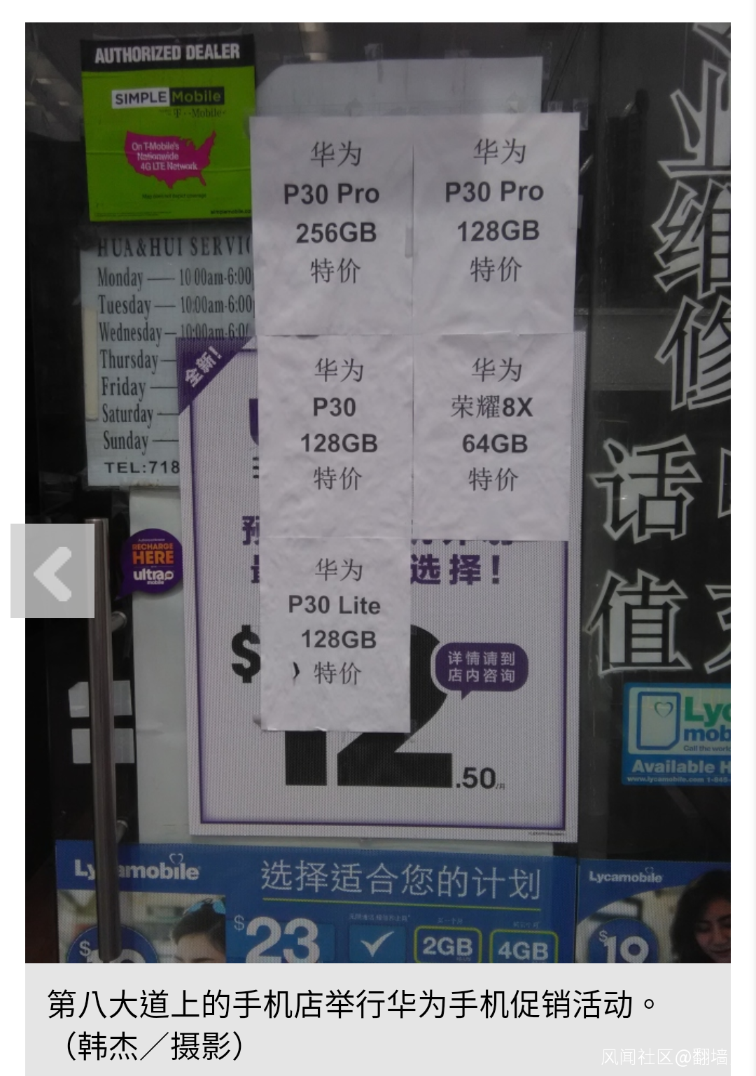 但是,華為手機在美國華人社區的銷售卻是另一番景象。實地走訪紐約市三大華人社區(唐人街、布魯克林第八大道和法拉盛),發現政府禁令對華人社區幾乎沒有影響,在約六、七十家華人手機店中,一半以上仍然出售華為手機。布魯克林的第八大道一家手機店女店員透露,“購買華為手機的華人最近突然增加”;曼哈頓唐人街一位手機店主表示,“每天都有人打電話來詢問,有無華為手機”;皇后區法拉盛的一些手機店表示,“美國版的華為手機一點不受影響,什麼台都能開”。