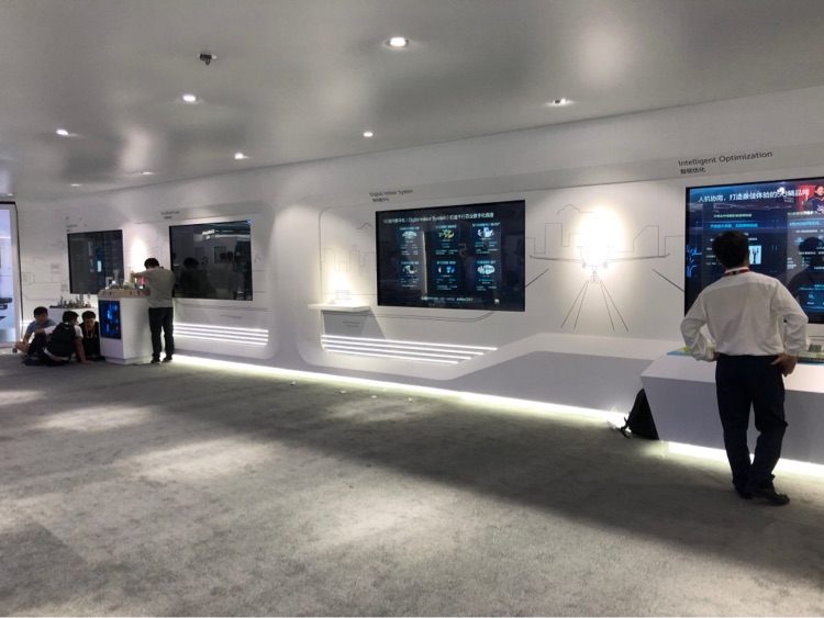 由於展覽將於明天正式開幕,所以各家展台都在今晚做最後的準備工作,華為的展台無疑是各家媒體感興趣的焦點,展台上方懸掛着華為的logo和5G is ON的口號,我簡單轉了一圈,信息量真的很大,有充滿樂趣的體感遊戲,也有豐富的應用場景介紹,還有最新科技的進展,總之乾貨滿滿。